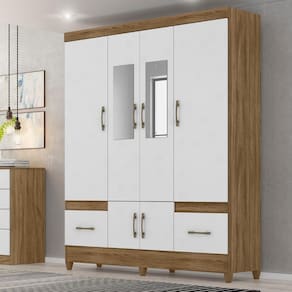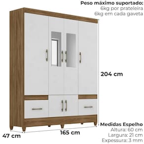 Projetado para atender às necessidades do dia a dia, o Guarda-Roupa Casal MS912 oferece espaço e modernidade. Estrutura em MDP (15/ 12 mm) e acabamento em pintura UV. Composto por portas com dobradiças metálicas (sendo 2 com espelho), cabideiro interno (alumínio), prateleiras e gavetas com corrediças metálicas. Produto com dupla opção de montagem: pés em PVC ou sapatas plásticas (2 mm) conforme preferência do cliente. Este produto será entregue em 03 volumes.