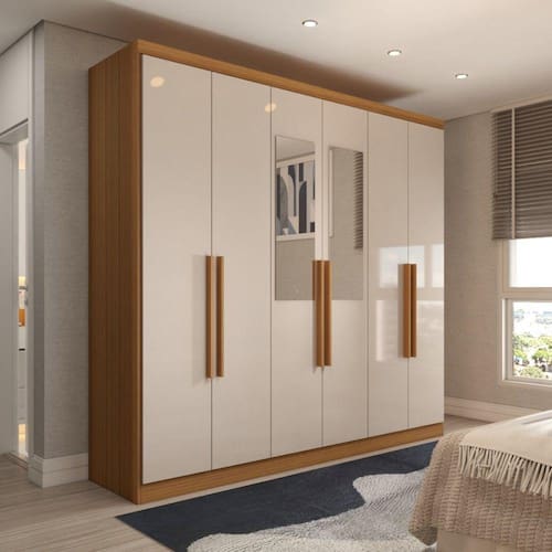 O(a) Guarda-Roupa Casal Mykonos 6 Portas 2 Gavetas com Espelho Cinamomo/Off White - Loja é produzido em MDP na escala de brilho Semi-Brilho, e possui um grau de dificuldade de montagem: Médio.
