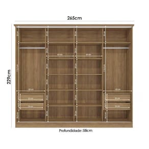 Dimensões(Cm): Comprimento(Profundidade): 58cm x Largura: 265cm x Altura: 229cm