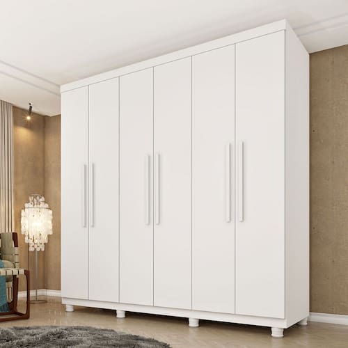 O(a) Guarda-Roupa Casal Nantes 6 Portas 4 Gavetas Neve - Pnr Móveis é produzido em MDP na escala de brilho Fosco, e possui um grau de dificuldade de montagem: Médio.