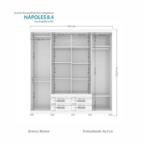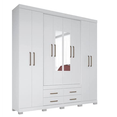 Guarda Roupa Casal Nápoles 8 Portas 4 Gavetas Branco Com Espelho E Pés - Santos Andirá Branco