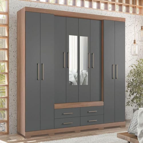 Guarda Roupa Santos Andira Napoles e o movel ideal para quem precisa de amplo espaco para armazenar roupas e acessorios, deixando o quarto na mais perfeita ordem. Com estrutura em MDP e revestimento em pintura UV, ele possui medidas consideraveis e ainda conta com compartimentos internos bastante funcionais.