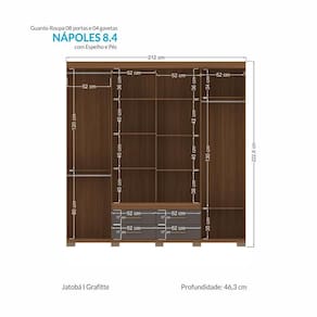 Guarda Roupa Casal Nápoles 8.4 8 Portas 4 Gavetas com Espelho e Pés - Santos Andirá