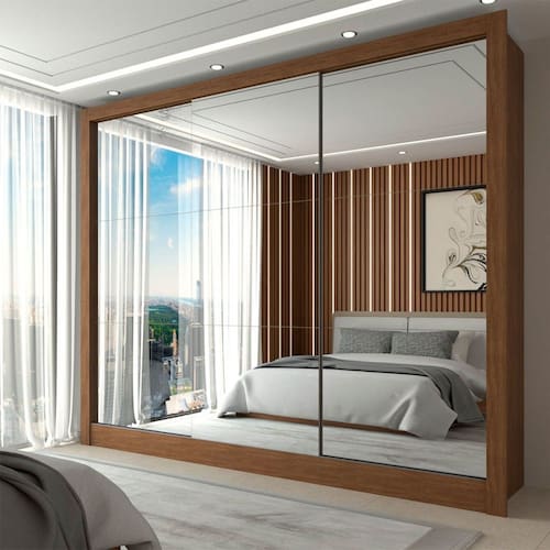 O(a) Guarda-Roupa Casal Nevada 3 Portas 3 Gavetas com Espelho Cinamomo - Loja é produzido em MDP na escala de brilho Fosco e Semi-Brilho, e possui um grau de dificuldade de montagem: Médio.