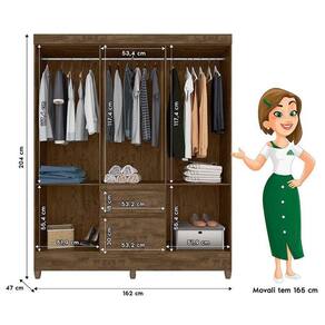 Guarda Roupa Casal New Cuba e Cômoda Venus com Pés Castanho Wood - Moval