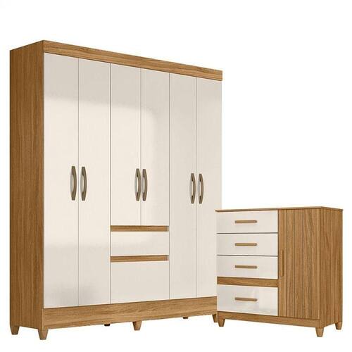 Organize seu quarto com elegância e o melhor custo beneficio do mercado. Apresentamos o Guarda Roupa Casal New Cuba e Cômoda Venus fabricados pela Moval. Guarda Roupa com 06 portas e 02 gavetas com corrediças metálicas, puxadores na cor bronze, cabideiro para melhor organização interna e pés em PVC. A cômoda possui 04 gavetas com corrediças metálicas, 01 porta com detalhes frisados, puxadores em MDF, pés em PVC e um design moderno que combina com qualquer decoração. Fabricado com materiais de alta qualidade que garante resistência e durabilidade ao produto. Confira mais detalhes e aproveite!