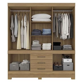 O Guarda-Roupa New Murano possui divisões e compartimento bem distribuídos oferecendo compartimentos exclusivos para vários pares de sapatos, maleiro espaçoso e prateleira. Gavetas externas com deslize perfeito e pés em PVC que facilitam a limpeza do piso ao redor do produto. Possui puxadores super elegantes na cor bronze permitindo que você personalize o seu ambiente deixando-o cada vez mais elegante.