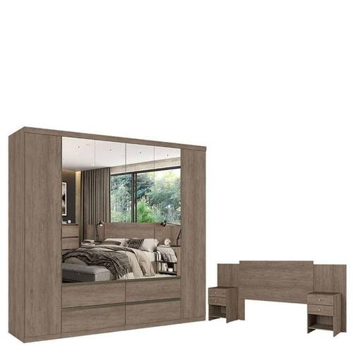 Guarda Roupa Casal Nobre 6 Portas Full Glass Rustic Acetinado E Cabeceira Com Mesas De Cabeceira Formosa Rustic- Thb Guarda Roupa Casal Nobre 6 Portas Full Glass Rustic Acetinado e Cabeceira com Mesas de Cabeceira Formosa Rustic- THBConjunto perfeito para deixar seu quarto elegante e funcional! Transforme seu quarto com estilo e praticidade! O Guarda Roupa Casal Nobre 6 Portas Full Glass Rustic Acetinado oferece amplo espaço interno, organização e um design moderno. Combinado à Cabeceira Casal Formosa com Mesas de Cabeceira integradas em Rustic, você garante charme, funcionalidade e mais conforto no ambiente. Perfeito para um quarto elegante, completo e harmonioso! Juntos, esses móveis criam um quarto completo, moderno e funcional ? perfeito para quem busca beleza, organização e conforto em um único conjunto. Confira e aproveite já!Guarda Roupa Casal Nobre 6 Portas Full Glass Rustic Acetinado - THBCaracterísticas Técnicas:Características Técnicas:- Desenvolvido em MDF 15mm- Pintura com acabamento UV Fosco- Dobradiças metálicas- Espelho incluso- 4 gavetas com corrediças telescópicas- 6 puxadores alumínio e 4 puxadores perfil decorativo- 1 cabideiro em alumínio - Design moderno Dimensões:Altura: 230 cmLargura: 250 cmProfundidade: 55 cmCabeceira Casal com Mesas de Cabeceira Formosa Rustic Acetinado - THBCaracterísticas Técnicas:- Desenvolvida em MDP 15 mm - Pintura com acabamento UV Fosco- Frente das gavetas com espelho - Ideal para colchões de 138 a 158 cm (não incluso)- Corrediças metálicas- Design modernoDimensões:Altura: 116 cmLargura: 276 cmProfundidade: 39 cmInformações importantes:- Nossas cargas possuem , portanto, no ato da , confira a quantidade de volumes recebida, e também o estado da embalagem. Se houver qualquer inconsistência, não assine o de ;- O armazenamento do produto no de é de responsabilidade do comprador. Evite apoiar o produto na vertical, bem como evite áreas que deixem o produto exposto a chuva ou umidade excessiva;- Pequenas variações de tonalidade são possíveis, em razão da diferença de resolução da tela onde o anúncio está sendo visualizado. Se notar diferença expressiva, comunicar a empresa antes de efetuar a montagem;- O de contratado contempla a até a primeira área coberta ou portaria, não sendo coberto o ato de subir escadas/elevadores ou adentrar nas residências;- Não nos responsabilizamos pela montagem, desmontagem ou instalação do produto. Marca: Não Informado