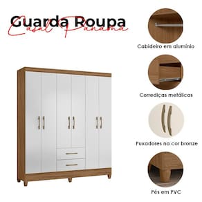 Guarda Roupa Casal Panamá 6 Portas Naturale Branco - Moval