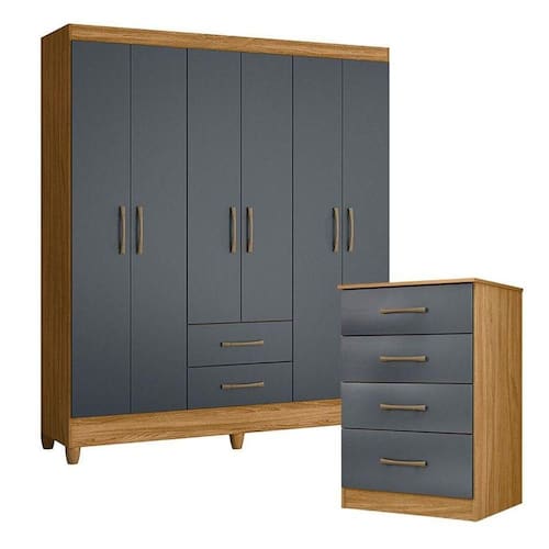 Guarda Roupa Casal Panamá e Cômoda MS913 Freijó Cinza Moval