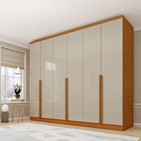 Guarda-Roupa Casal Paradiso sem Pés 6 Portas 4 Gavetas Cinamomo e Off White 270 cm - Marrom