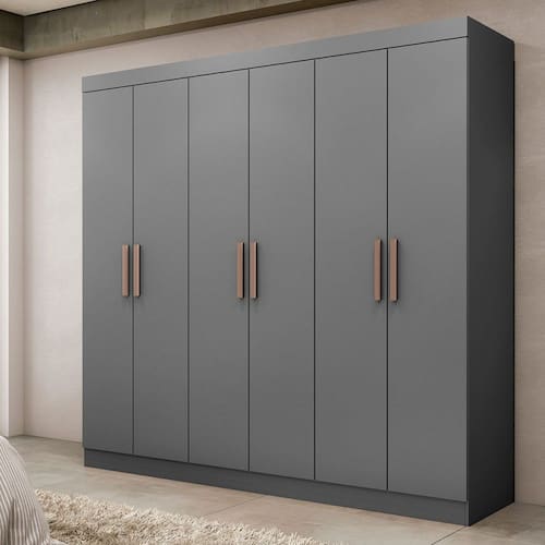 Guarda-Roupa Casal Paris 6 Portas 2 Gavetas Onix - Maxel - Cinza