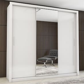 Guarda-roupa Paula com 3 portas de correr, 2,08m de altura, 1,855m de largura e 0,46m de profundidade, 4 prateleiras e 3 cabideiros, deixa o produto com uma divisão funcional capaz de proporcionar ao cliente acomodar todas as suas roupas de maneira mais organizada e com maior visibilidade. Nos maleiros cabem certinhos edredons, cobertores, travesseiros, malas, toalhas, bolsas, entre outros. Os três cabideiros, além de resistentes, não envergam com o peso dos moletons, ternos, sobretudos, camisas e acessórios. Prateleiras são ideias para colocar roupas de cama e de banho, perfumes, kits de maquiagem, caixinhas com acessórios e bolsas menores. Estrutura do produto em mdp.