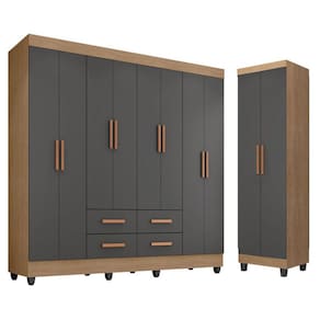 Guarda Roupa Casal Porto 8 Portas e Armário Multiuso Lite Nature Cinza – Móveis Leão