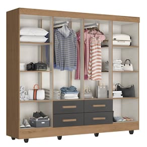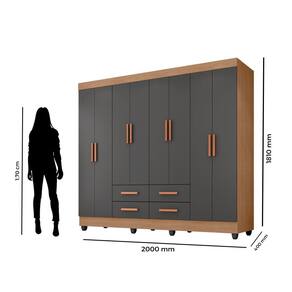Guarda Roupa Casal Porto 8 Portas Nature Cinza – Móveis Leão