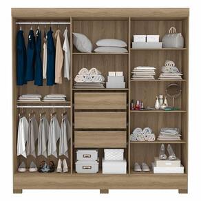 O Guarda-Roupa Prático possui uma estrutura compacta, puxadores que acompanham as cores do produto e neutralidade para compor em diferentes estilos de dormitórios. Distribuição interna completa, com gavetas que acompanham corrediças metálicas, prateleiras amplas e cabideiros. O Guarda-Roupa Prático conta com um excelente design que proporcionará ao seu quarto um estilo único.