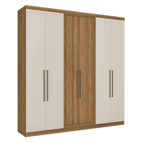 Guarda Roupa Casal Presence 6 Portas Almendra Off White Acetinado - THB