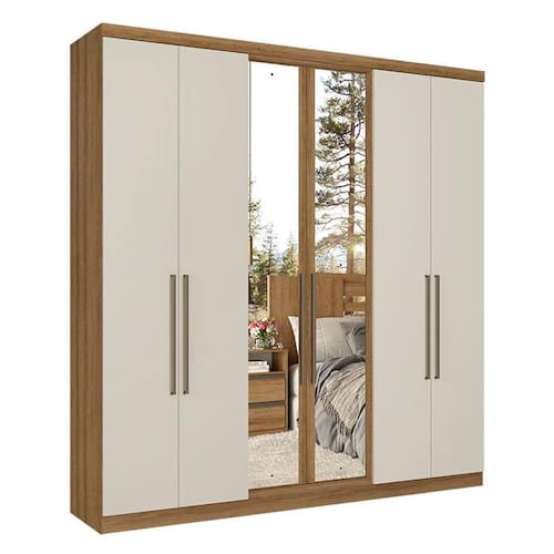 Guarda Roupa Casal Presence Full Glass 6 Portas Almendra Off White Acetinado - THB