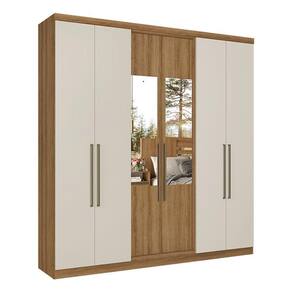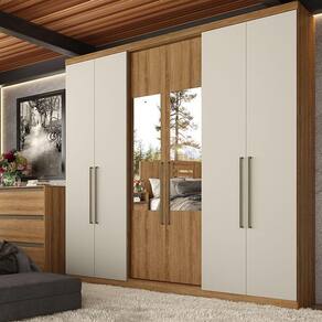 Guarda Roupa Casal Presence Glass 6 Portas Almendra Off White Acetinado - THB