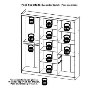 - 3 Prateleiras removíveis e 5 tampos fixos