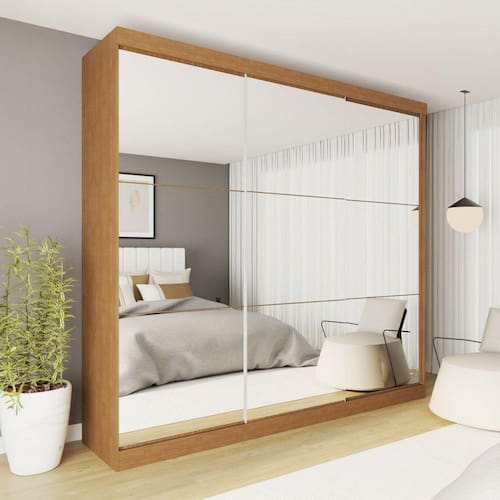 O(a) Guarda-Roupa Casal Rennes 3 Portas de Correr Espelhado 4 Gavetas Carvalho - Minastex é produzido em MDP na escala de brilho Fosco, e possui um grau de dificuldade de montagem: Médio.