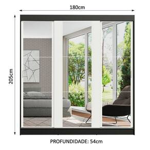Medidas totais do guarda-roupa: 205 cm de altura x 180 cm de largura x 54 cm de profundidade.