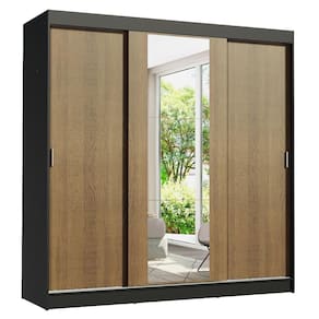 São três portas de correr com trilhos em alumínio e deslizamento suave, que otimizam o espaço do quarto, sem atrapalhar no momento da abertura. Além disso, a porta central conta com espelhos que ampliam o ambiente e são muito práticos no uso diário.