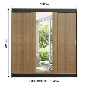 Medidas totais do guarda-roupa: 205 cm de altura x 180 cm de largura x 54 cm de profundidade.