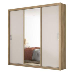 Guarda Roupa Casal Residence 3 Portas Amêndola/off White Com Espelho - Demóbile Amêndola/off White Guarda Roupa Casal Residence 3 Portas com Espelho - Demóbile Os pontos fortes do Guarda-Roupa Casal Residence são conforto, sofisticação e praticidade. As portas deslizantes proporcionam economia de espaço no quarto, juntamente com as gavetas internas pela facilidade do manuseio. Porta de espelho inteiriço emoldurada em MDF que oferece requinte e beleza ao ambiente. As prateleiras oferecem organização as roupas e aos pequenos objetos do casal, os cabideiros e trilho inferior em alumínio. A cor versátil e design básico permitem uma ótima harmonização do quarto. ESPECIFICAÇÕES: - Estrutura em MDP e MDF - Pintura UV - 3 Portas de correr - Trilho superior de plástico - Trilho inferior de alumínio - Porta central com espelho - Puxadores embutidos - 2 Gavetas - Corrediças metálicas - Interna com prateleiras - 4 Cabideiros metálicos - Maleiro espaçoso