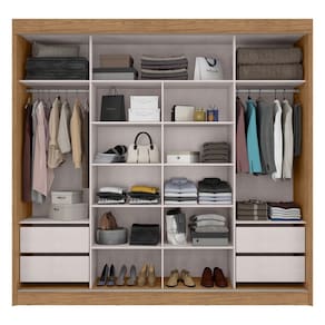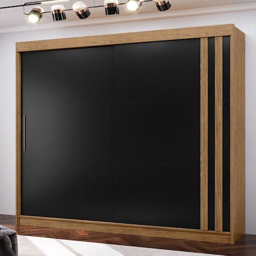 Caracter?sticas: Estrutura 100 MDF Acabamento pintura UV texturizada 2 Portas de Correr 4 Gavetas Internas Com detalhe Ripado Corredi?as telesc?picas Cabideiro em alum?nio Puxador em alum?nio Peso suportado por prateleira: 8kg Peso suportado por gavetas: 3kg