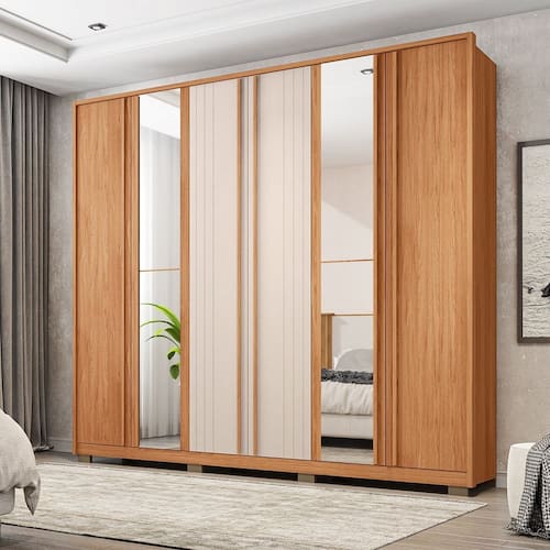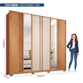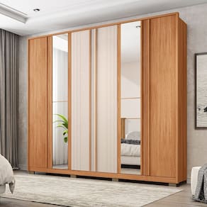 Guarda-Roupa Suburban é uma forma diferente de você montar o seu quarto, tem 14 repartições internas, gavetas com corrediças telescópicas, cabideiros inclusos e pés opcionais para a montagem, oferecendo muito espaço para guardar suas roupas e pertences. A porta com ripado em baixo relevo é um toque moderno garantindo a sofisticação ao seu quarto ou closed. Acabamento da Prateleira: Pintura UV Escala de Brilho da Prateleira: Fosco Possui Cabideiros: Sim Acabamento da Gaveta: Pintura UV Escala de Brilho da Gaveta: Fosco Possui Organizador de Gaveta: Não Acabamento da Porta: Pintura UV Escala de Brilho da Porta: Fosco Altura do Espelho: 108,3 cm Altura dos Pés: 5 cm Ambiente Principal: Quarto codigo_ean: 7909903739679 Complexidade da Montagem: Alta: deve ser montado por um montador especializado Cor: Freijó/Off White Cor do Produto: Freijo/Off White Escala de Brilho: Fosco Espessura do Espelho: 3 mm Formato do Espelho: Retangular Gaveta com Chave: Não Itens Inclusos: 1 Guarda Roupa, Kit ferragens e Manual de Montagem Largura do Espelho: 37,5 cm Linha ou Coleção: Suburban Manual de Montagem e Instalação: https://product-hub-prd.madeiramadeira.com.br/914236/documents/162a3fcf-136a-4ed3-ace3-7cfde66e292a2040297559517181279262718.pdf Material da Gaveta: MDP/HDF Material da Porta: MDP Material da Prateleira: MDP Material dos Pés: ABS Material Principal: MDP modular: Não Necessita Montagem: Sim Origem do Produto: Nacional Peso: 196,11 kg Peso Máximo por Gaveta: 4 kg Peso Máximo por Prateleira: 5 kg Possui Espelho: Sim Possui Pés: 08 Possui Portas: Sim Possui Prateleiras: Sim Produto Montado: Sim Quantidade de Espelho: 04 Espelhos com Tamanhos Iguais Recomendações de Uso, Manutenção e Limpeza: Limpar com pano macio levemente umedecido e em seguida pano macio seco. Não utilizar produtos abrasivos (lixas, esponjas) e/ou produtos a base de solventes (thinner, aguarrás). Sistema de Montagem: Utiliza-se na montagem do produto sistema de fixação minifix, dobradiças, dispositivos angulares, cavilhas, parafusos, porcas cilindricas, entre outros; Tipo de Corrediça da Gaveta: Metálica Telescópica Tipo de Dobradiça/Corrediça da Porta: Metálica Tipo de Fixação do Espelho: Parafusos Tipo de Gaveta: Interna Tipo de Guarda-Roupa: Casal Tipo de Puxador da Gaveta: Não Possui Tipo de Puxador da Porta: Externo