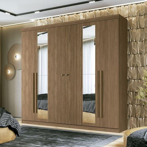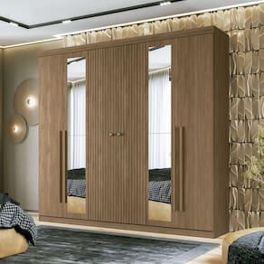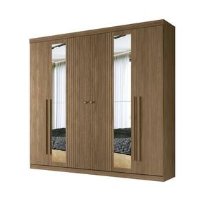 Guarda Roupa Casal Ripado 6 Portas 4 Gavetas com Espelhos Antony Jatoba - Marrom