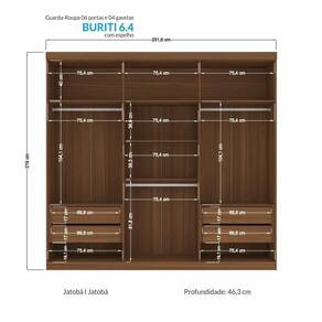 O guarda-roupa Buriti 06 portas com espelhos é um guarda-roupa de casal de ótima qualidade, além do design diferenciado e atemporal que ele tem. São 6 portas, sendo 02 delas em MDF e com detalhe usinado ripado e puxadores pontuais em ABS. As demais portas em MDP seguem com puxadores em MDF revestido em formato grande. Possui 07 amplas prateleiras, 03 cabideiros oblongos em alumínio de excelente qualidade para pendurar as roupas, 04 gavetas com corrediças telescópicas que suportam mais peso e compartimento para guardar pertences de valor. O acabamento é em textura Reverse semi fosco, suave ao toque e que facilita a limpeza. Todo o processo fabril está certificado na ISO 9001, excelência na qualidade dos processos e ISO 14001 nos cuidados com o meio ambiente.