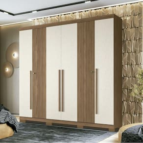 Guarda Roupa Casal Ripado 6 Portas 4 Gavetas com Pés Antony Jatobá/Areia - Marrom