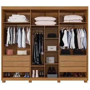 Característica: Estrutura MDP 6 Portas Pés 6 gavetas Corrediças telescópicas Cabideiro em alumínio Espaço para roupas longas Pés Prateleiras