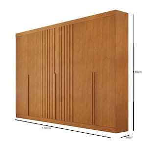 O Guarda Roupa Siena combina qualidade e praticidade em um só móvel. Fabricado com matéria-prima de primeira, 100 MDF e estrutura reforçada de 15mm, ele oferece um amplo espaço interno dividido no sistema ELE e ELA, ideal para organizar suas roupas de forma eficiente. Com seis portas, sendo duas ripadas ao centro, e seis gavetas internas com corrediças telescópicas, garante facilidade de acesso e organização. As costas inteiras proporcionam maior durabilidade, enquanto o nicho organizador com três prateleiras centrais bem distribuídas oferece espaço para itens variados e roupas longas. Além disso, conta com cabideiros em alumínio e puxadores em madeira envelopada, combinando funcionalidade com elegância.