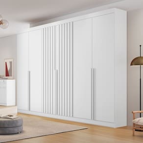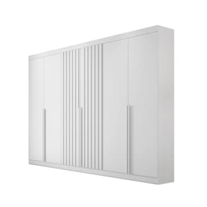 Guarda Roupa Casal Ripado 6 Portas em MDF Siena Bianchi O Guarda Roupa Siena combina qualidade e praticidade em um só móvel. Fabricado com matéria-prima de primeira, 100 MDF e estrutura reforçada de 15mm, ele oferece um amplo espaço interno dividido no sistema ELE e ELA, ideal para organizar suas roupas de forma eficiente. Com seis portas, sendo duas ripadas ao centro, e seis gavetas internas com corrediças telescópicas, garante facilidade de acesso e organização. As costas inteiras proporcionam maior durabilidade, enquanto o nicho organizador com três prateleiras centrais bem distribuídas oferece espaço para itens variados e roupas longas. Além disso, conta com cabideiros em alumínio e puxadores em madeira envelopada, combinando funcionalidade com elegância.