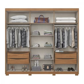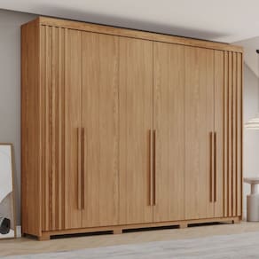 Características: Pintura UV Texturizada Material do Fundo: MDF Possui Espaço para Vestidos Longos: Não Possui Maleiro: Sim 6 Portas Tipo Porta: Bater Material da Porta: MDP Tipo de Dobradiça: Metálica Tipo de Puxador da Porta: Externo Material do Puxador Porta: MDF Revestido 4 Gavetas Material da Gaveta: MDF/MDP Tipo de Gaveta: Interna Material da Corrediça: Metálica Telescópica Peso Máximo por Gaveta: 3 Kg 4 Prateleiras Material da Prateleira: MDP Peso Máximo por Prateleira: 8 Kg Qtd de Pés: 8 Und. Material dos Pés: ABS Altura Pés/Rodapés: 5 cm Produto Suporta até -Kg-: 44 Kg Material Principal: MDP Portas com apliques ripados Gavetas com usinagem para pega Cabideiro e calceiro em alumínio Puxador em MDF revestido Produto FLEX, várias opções de montagem, a montagem das portas deve ser escolhida no ato da montagem