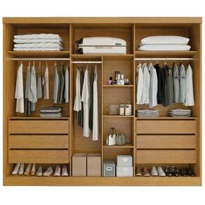 Este Guarda-roupa você vai amar! Possui divisões funcionais que possibilita uma melhor organização, ideal para dar o ar delicado e sofisticado para o ambiente que você merece! Fabricado em 100% MDF, sendo a estrutura em MDF de 15mm, laterais do roupeiro com encabeçamento de MDF de 25mm, 6 gavetas com corrediças telescópicas, amplo espaço interno para que você possa organizar seus pertences, roupas de cama, vestuários e calçados, possui 6 prateleiras internas, 3 cabideiros em alumínio, espaço para roupas longas, puxadores de madeira. Vamos deixar seu quarto muito mais charmoso!, aproveite!