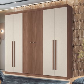Guarda Roupa Casal Ripado 6 Portas Sintra Jatobá Areia - Marrom