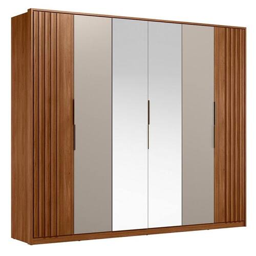 Guarda Roupa Casal Ripado Atrice 6 Portas Nogueira Nude Prime TX com Espelho Demóbile – Demartêz