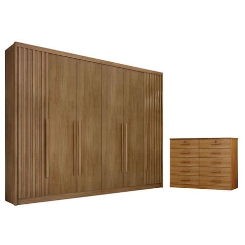 Guarda Roupa Casal Ripado Bragança 6 Portas 6 Gavetas Cumaru 23 Novo Horizonte