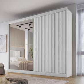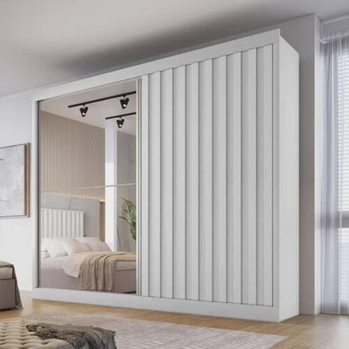 Guarda Roupa Casal Ripado com Espelho 2 Portas 4 Gavetas - Atlanta-Branco Acetinado - Made Marcs