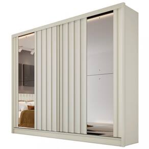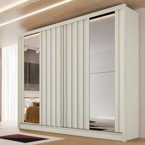Guarda Roupa Casal Ripado com Espelho 2 Portas de Correr 100 MDF Galati Made Marcs - Branco