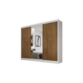 Guarda Roupa Casal Ripado com Espelho 3 Portas 4 Gavetas - Royale-Branco - Móveis Novo Horizonte O Guarda Roupa Royale vai proporcionar um ambiente aconchegante mantendo um visual sofisticado e funcional. Composto por peças de extrema qualidade e com excelente espaço interno bem distribuídos, oferecendo máxima organização de forma prática. Fabricado em 100% MDF, 3 portas de correr com detalhe ripado, possui 4 gavetas com corrediças telescópicas, trilho inferior e cabideiros em alumínio. Amplo espaço interno. Aproveite! Faz parte do anúncio: 1 Guarda Roupa Casal Ripado com Espelho 3 Portas 4 Gavetas - Royale - Móveis Novo Horizonte Obs. Objetos de decoração não inclusos Particularidades do guarda-roupa: Características: - 100% MDF; - Colunado em 25mm; - Espelho com película de segurança;; - 4 Gavetas internas com puxadores; - Corrediças telescópicas; - Trilho inferior em alumínio e roldanas com amortecedores; - Roldana superior com guia zero e freio; - Fundo inteiriço; - Cabideiros em alumínio; Dimensões: Altura: 2,36 metros Largura: 2,41 metros Profundidade: 55,5 centímetros Informações Importantes:. -Produtos podem apresentar diferenças de tonalidades entre a foto na tela e o produto real, devido a calibração de cor de tela. -Limpar com flanela ou pano macio. Não utilizar álcool. Não utilizar produtos abrasivos ou corrosivos. -Nós prezamos pela qualidade da entrega em primeiro lugar, trabalhamos com transportadoras altamente selecionadas e os melhores materiais de embalagem. -A montagem é de total responsabilidade do comprador. Antes de comprar, verifique o espaço disponível para a montagem. -Certifique-se de que o produto caiba em elevadores e vãos de escadas, não fazemos içamentos. Quaisquer despesas deste tipo ficam a cargo do cliente -Garantia de 3 meses contra defeitos de fabricação.
