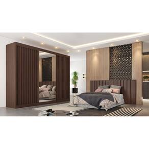 Guarda Roupa Casal Ripado com Espelho 3 Portas 6 Gavetas - Athenas-Ipê - Móveis Europa