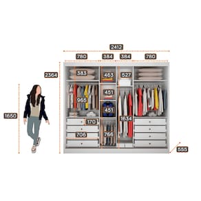 Dimensões: Altura: 2,36 metros Largura: 2,41 metros Profundidade: 55,5 centímetros