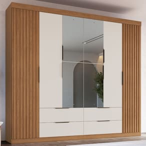 Características: Estrutura em MDP Ripado 6 Portas 4 Gavetas Corrediças telescópicas Cabideiro em alumínio 12 Prateleiras Puxadores em ABS