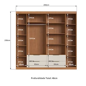Dimensões: Altura: 230 cm Largura: 250 cm Profundidade: 48 cm Peso: 170,00 kg