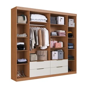 Características: Estrutura em MDP Ripado 6 Portas 4 Gavetas Corrediças telescópicas Cabideiro em alumínio 12 Prateleiras Puxadores em ABS
